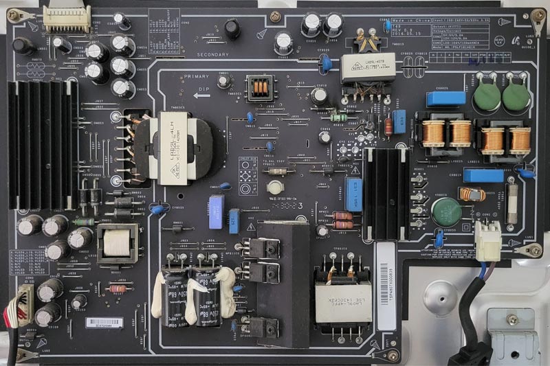 小米L49M2-AA电视黑屏不开机、指示灯不亮,电源板PSLF181A01X维修过程