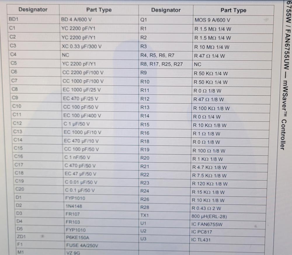 回到维修店里来,拿着强光手电筒照着电路板一点点分析电路走向,花了半个小时终于又测量出好几个元件损坏,位号ICS801C的电源芯片FAN6755的6脚供电对地短路了、短路烧了6脚的位号RS808/100Ω的供电贴片电阻,还有位号RS809、位号RS812、位号RS813的贴片电阻都炸掉了,电阻值也看不到了,只能尝试找一下电路图纸,看能不能找得到这几个炸掉电阻的阻值吧。在百度搜索、各大维修论坛逛了好几遍,就是找不到小米L49M2-AA的电源板图纸。