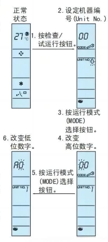 (Unit No.)的显示,直到室内机发出蜂鸣声(*1)。 *1哔音次数