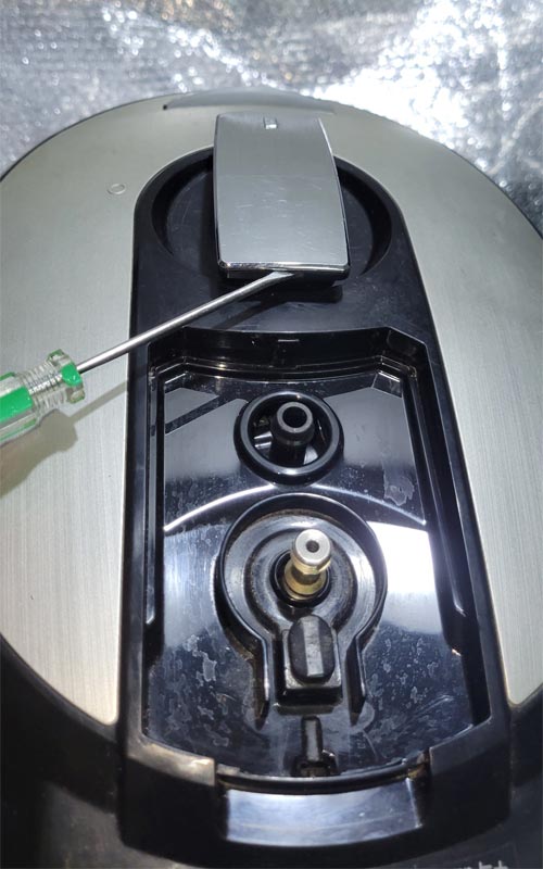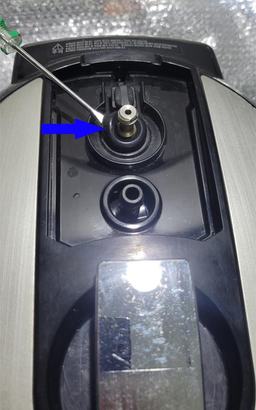 第三步,将压力阀下面的橡胶防尘帽用一字螺丝刀撬起来,如下图: