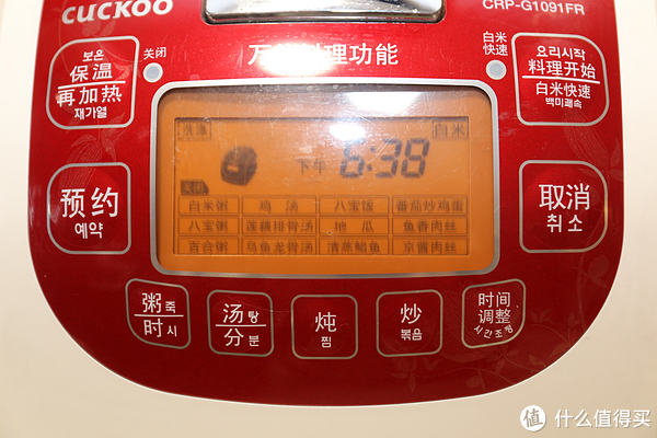 韩国电饭煲没有中文怎么使用各个功能,韩国品牌CUCKOO福库电饭煲CUCHEN酷晨电饭煲按键面板功能中文翻译与对照图片,直接上图:从下述多个图中可以看到,有个规律:按键面板最左边的功能键,左上功能键为“保温/再加热”;左下功能键为“预约”;按键面板最右边的功能键,右上功能键为“压力煮饭/白米快速”,右下功能键为“取消”;其它功能键那就不是统一的位置了。