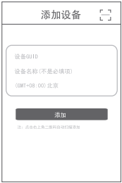3. 设备添加--登陆后点击右上方“+”添加GUID, 可直接输入GUID号或扫描产品中GUID二维码