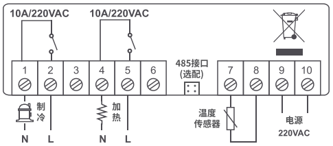 | 继电器输出容量 | 制 冷 / 加 热 : 1 0 A / 2 5 0 V A C |
