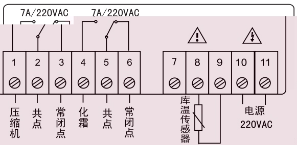 8、化霜输出接点容量:7A/220VAC