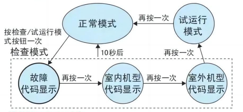 1. 如果空调机因故障而停止运行,则线控器上的运行状态LED将闪烁,同时显示故障代码。